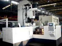 主減速器殼三軸鏜孔車端面機床,本機床是為粗加工、半精加工主減速器殼三孔及車削主減速器殼主錐端面而設(shè)計的專用機床。本機床采用立臥復(fù)合式三面結(jié)構(gòu),左右端各布滑臺和鏜頭,用于兩端孔的加工。立頭采用西德標(biāo)準(zhǔn)的DSS系列雙向刀盤鏜車頭,用于主錐端面孔加工,鏜車頭主電機采用變頻調(diào)速,以滿足鏜大小孔時切削速度的變化。中間采用數(shù)控滑臺,滑臺上安裝液壓夾具,以適應(yīng)不同品種的偏置距。